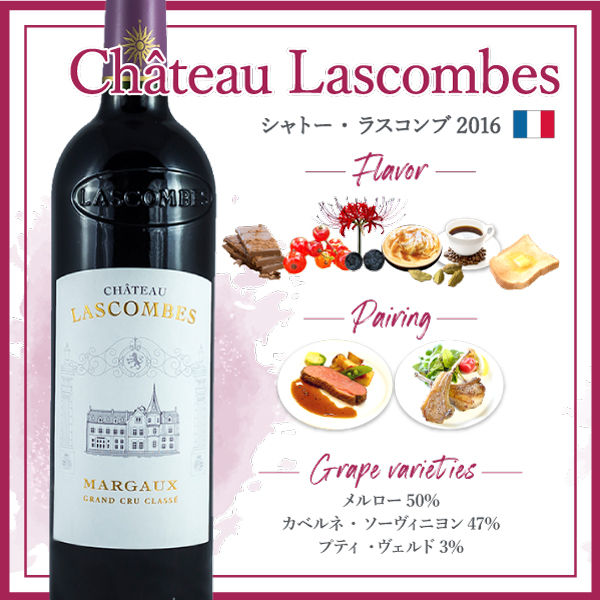 合う料理: 肉やラムと好相性。 葡萄品種: 50% メルロー、47% カベルネ・ソーヴィニヨン、3% プティ・ヴェルド