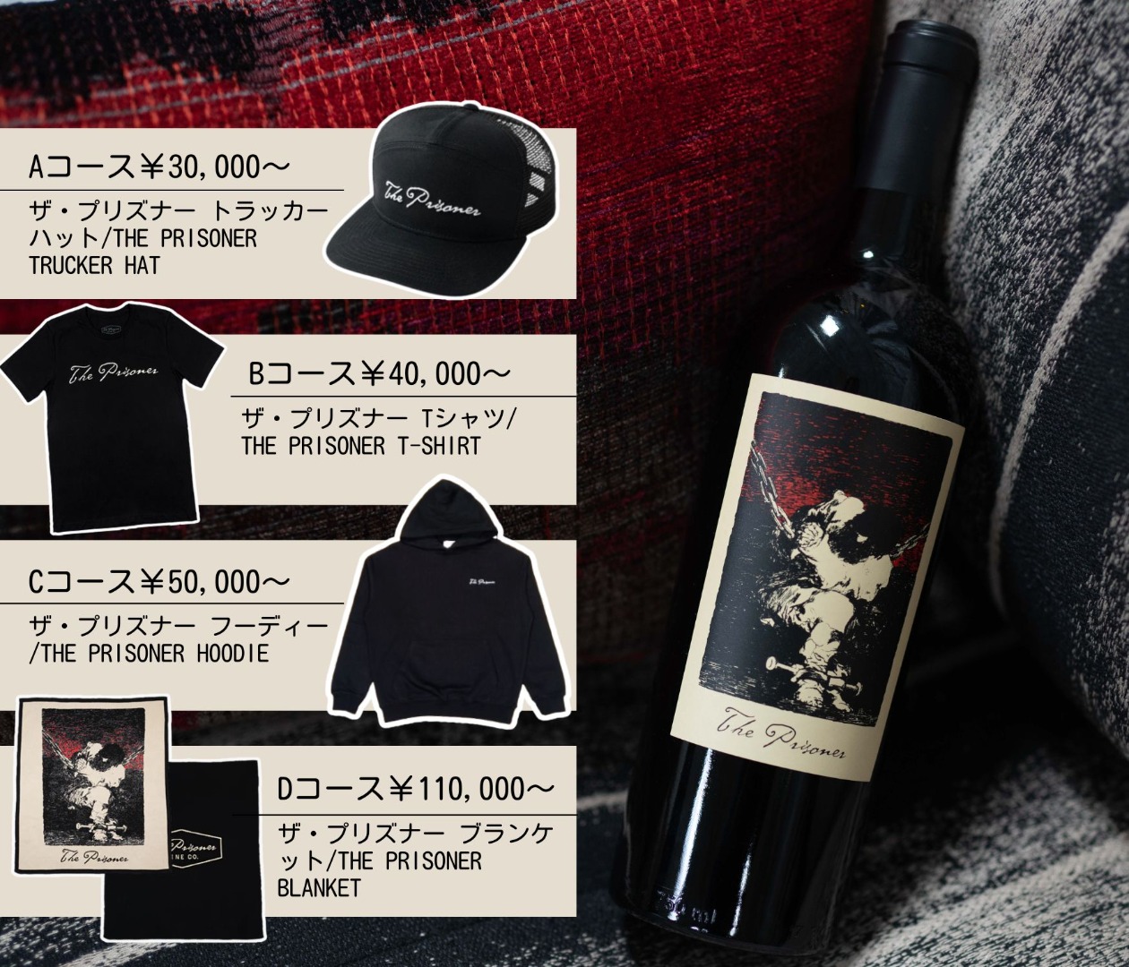 ※対象商品は本ページ(プリズナー日本未発売グッズプレゼントキャンペーン特設ページ)に掲載のザ・プリズナー・ワイン・カンパニーの商品です。