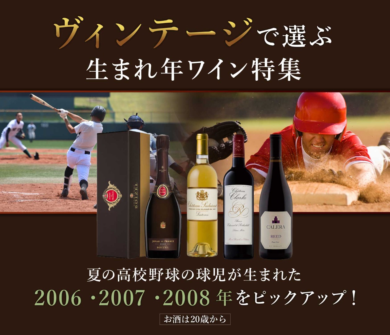 全力プレーで私たちを感動させてくれる球児たちの生まれた2006~2009年ヴィンテージのワインをピックアップ!