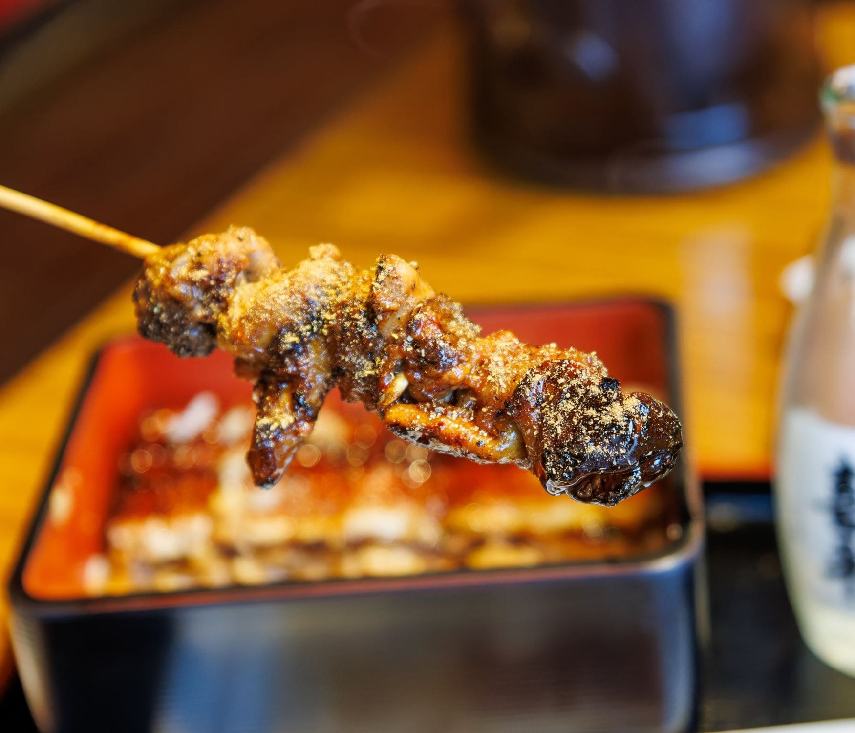 屋台の定番、氷水に浮かんだ缶ビールに合わせるのは、七味を振ったうなぎの肝串やイカ焼き、身体が冷えたらストーブの上の鍋で湯煎されたワンカップの熱燗とおでん、もつ煮もいいですね。ここはワインにこだわらず、酉の市では酉の市のペアリングを楽しみます。